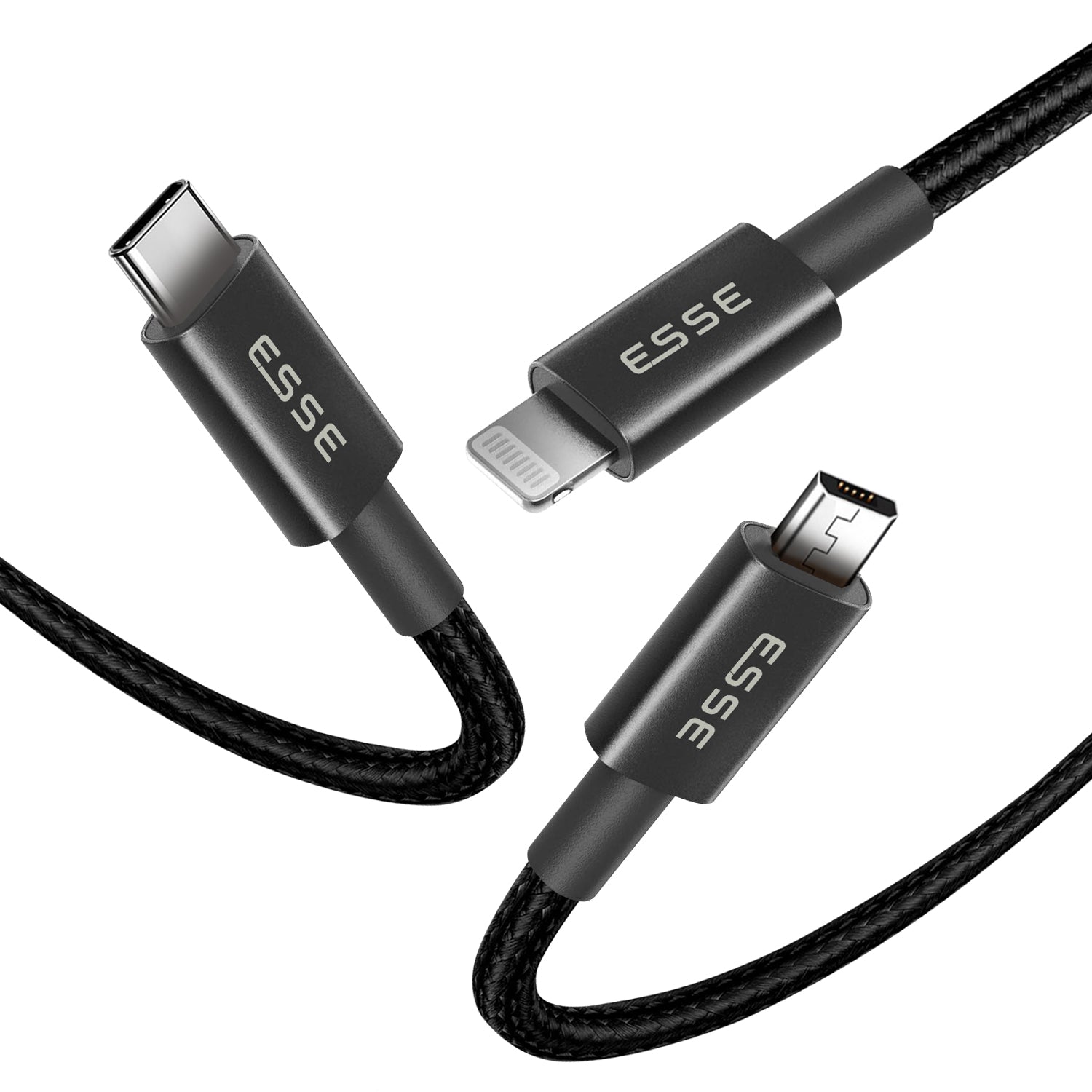 Elevate your charging and data transfer experience with this durable and speedy accessory. The black nylon braided exterior and aluminum metal alloy shell provides maximum protection and strength, while the USB to Lightning, Type-C, and Micro USB connectivity allows for fast and safe charging. With a data transfer speed of 480Mbps and a compact, tangle-free design, it's easy to take on-the-go and compatible with a wide range of devices.