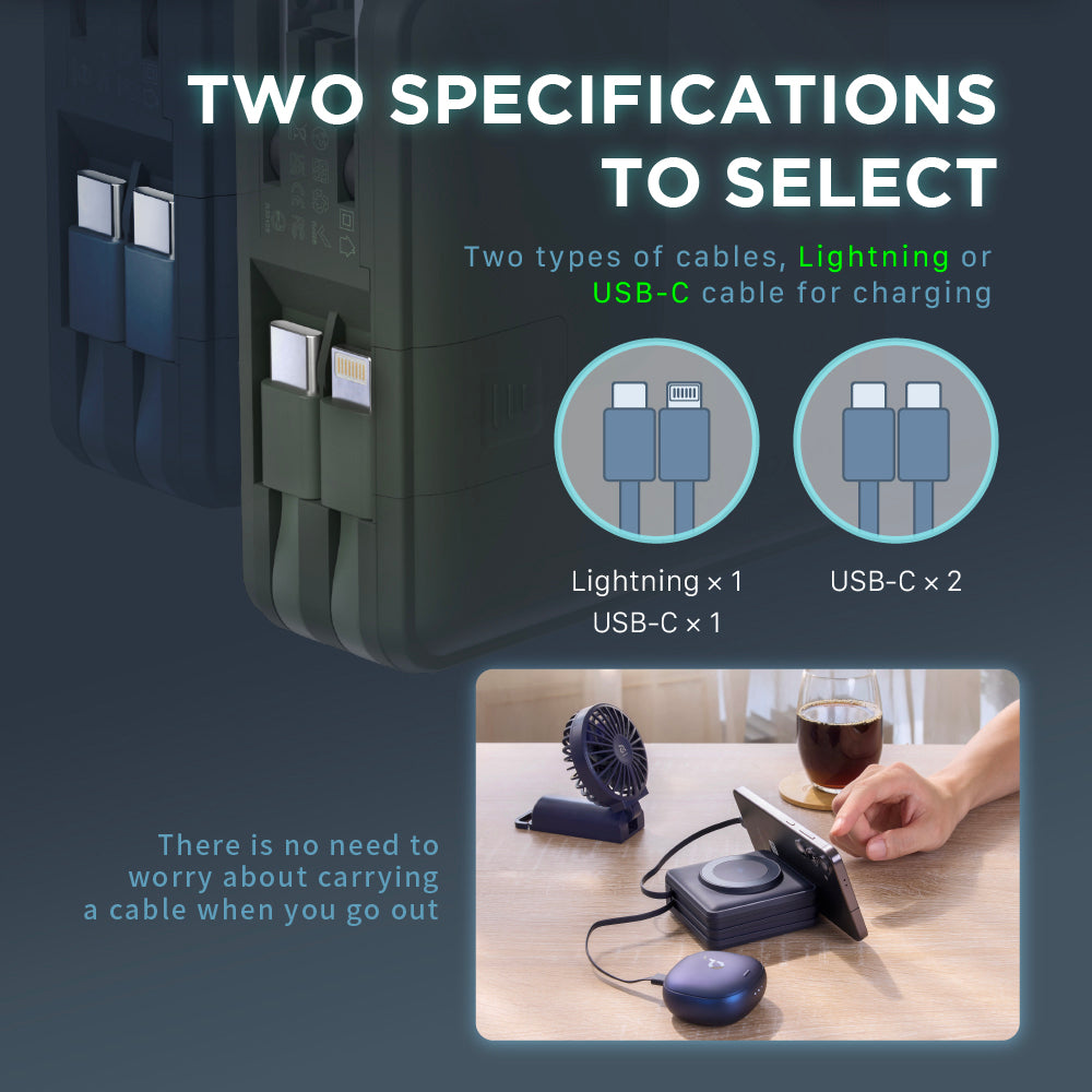 The GRAVITY X5 is the all-in-one power solution for travelers and tech enthusiasts. With a 15,000mAh capacity, built-in USB-C and Lightning cables, and MagSafe compatibility, it ensures seamless charging wherever you go. Designed for convenience, it features a unique stand design for hands-free use, an LED display for real-time battery tracking, and patented multi-country adapters for use in over 150 countries.