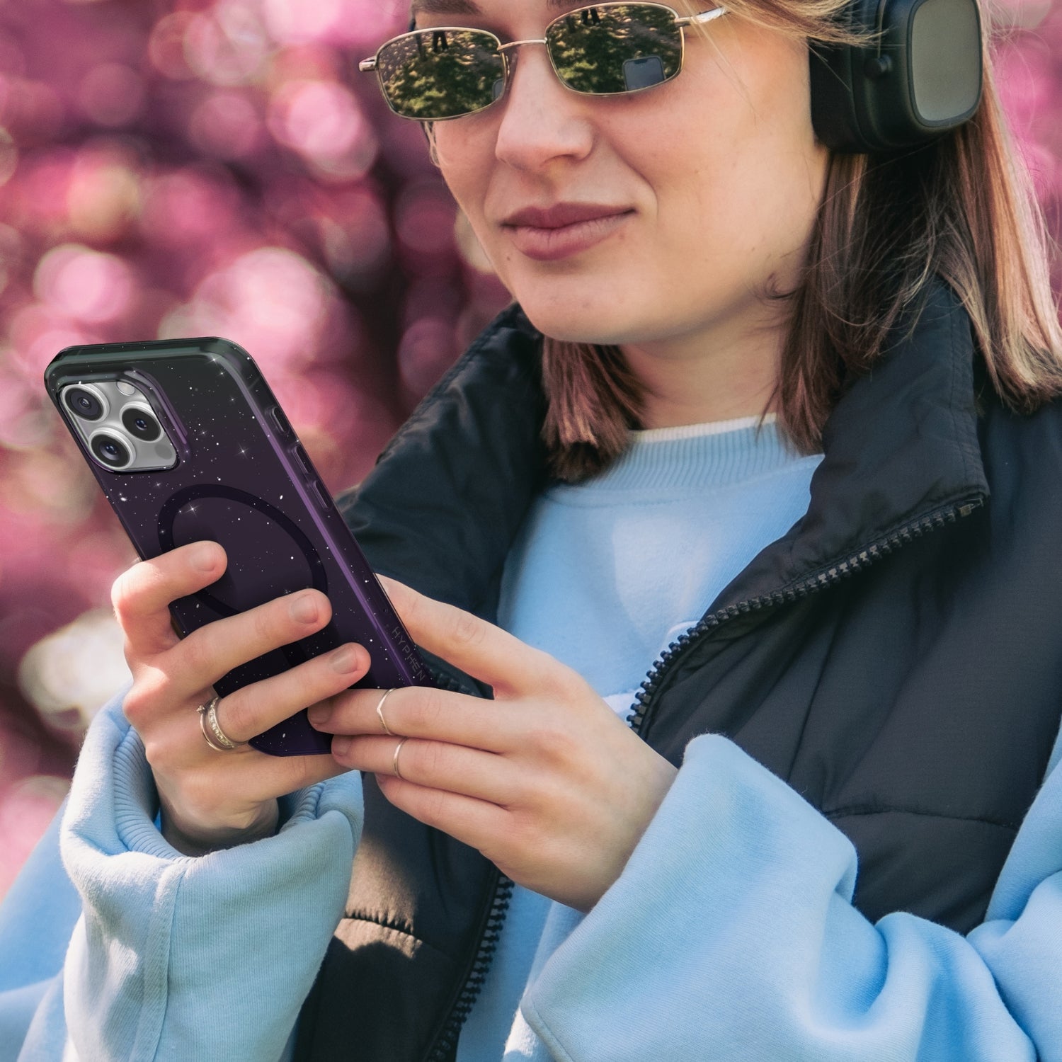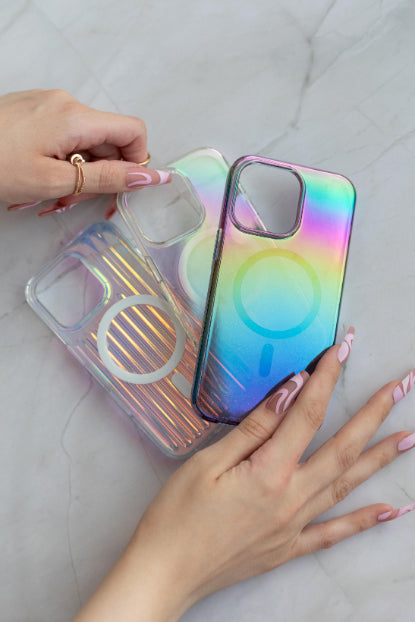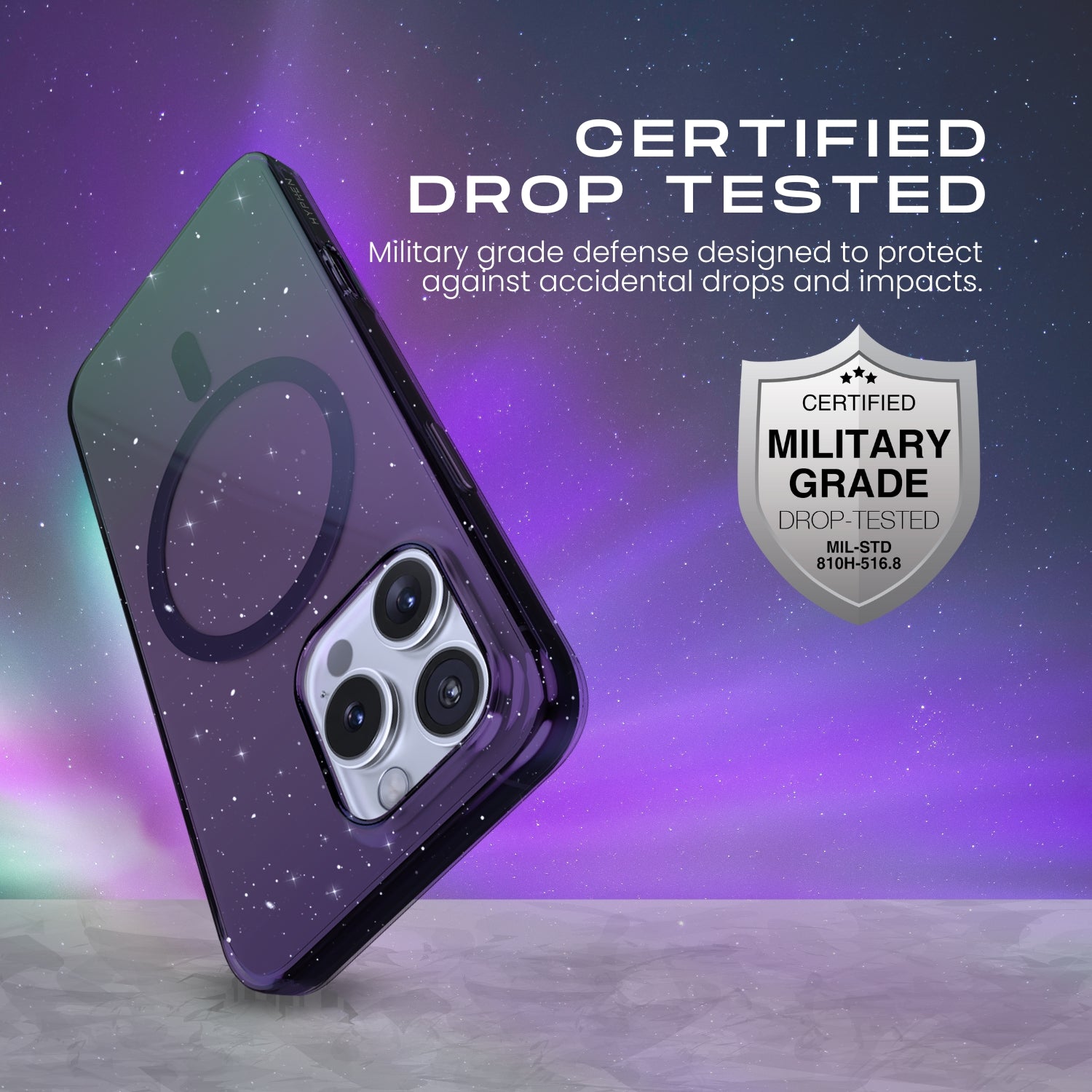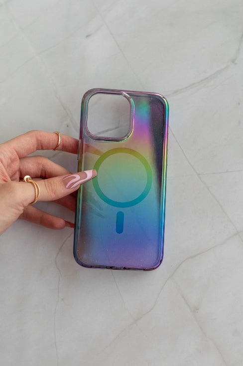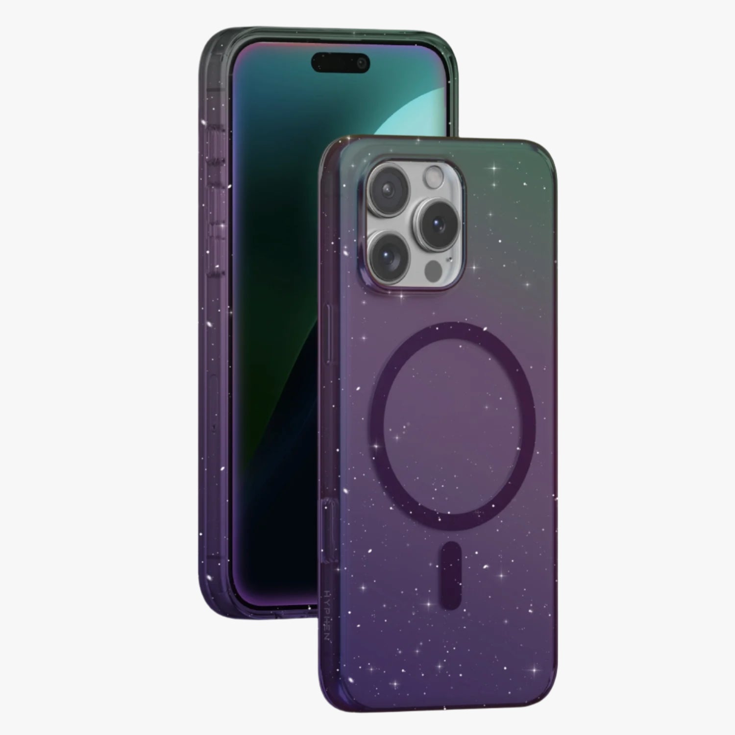 Enhance your iPhone's elegance with the IRIS Glitter Luminous Case, featuring a stunning combination of PrismaticGlow™ iridescence and a dazzling glitter finish. This case ensures both style and durability, providing military-grade protection for your device.