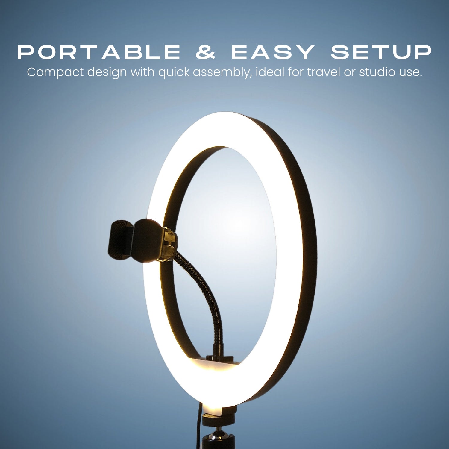 - 12-inch ring light set with smartphone holder and adjustable tripod