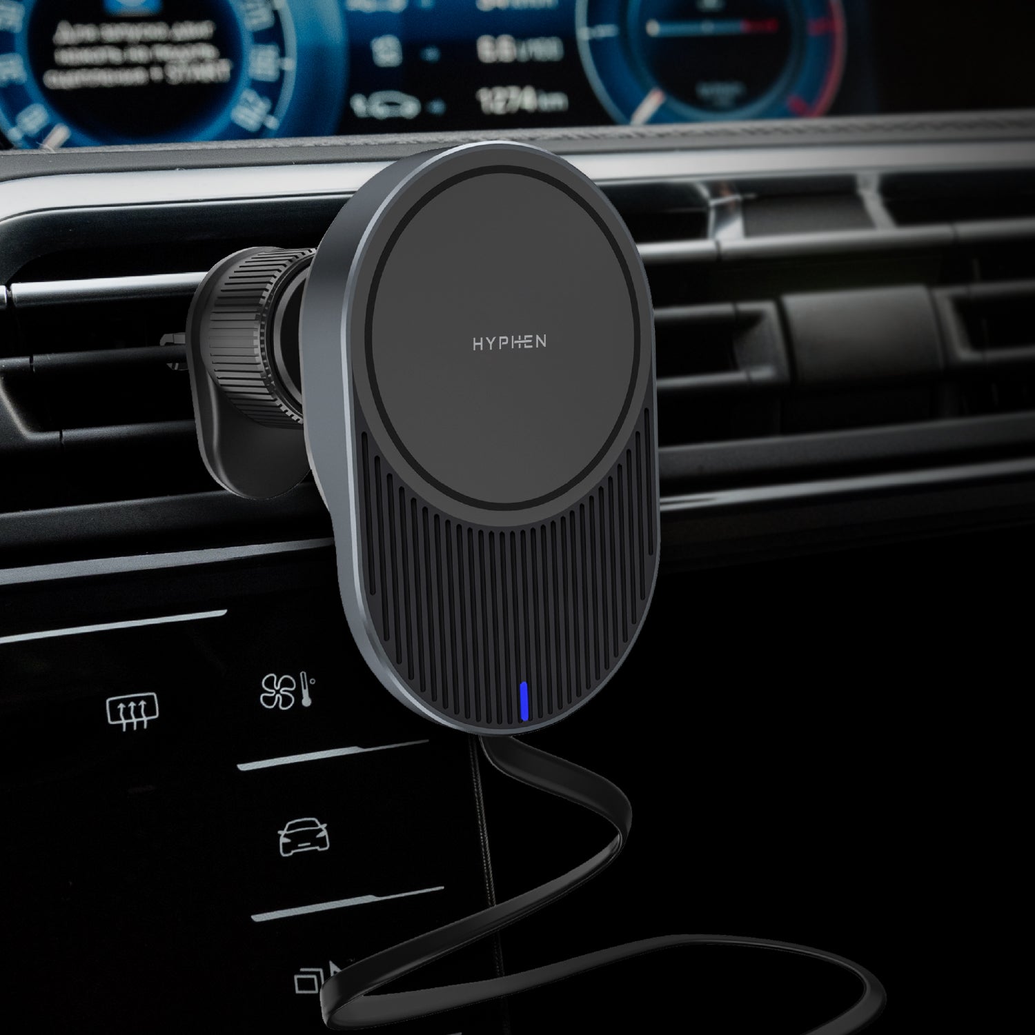 The MAGT WC15 is your complete car charging solution. This innovative trio combines a MagSafe Wireless Charger with a built-in Type-C cable, a powerful 20W Car Charger, and a universal MagSafe ring. Experience blazing-fast 15W wireless charging, a secure magnetic hold, and adjustable viewing angles for a seamless in-car experience.