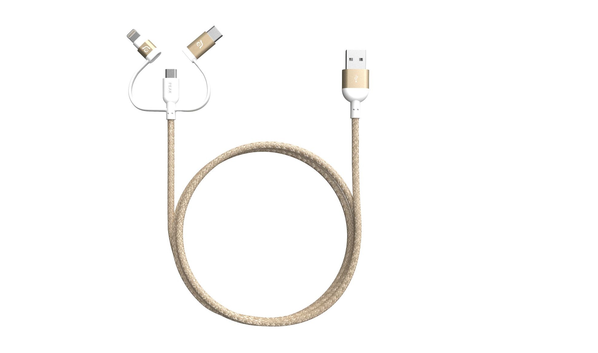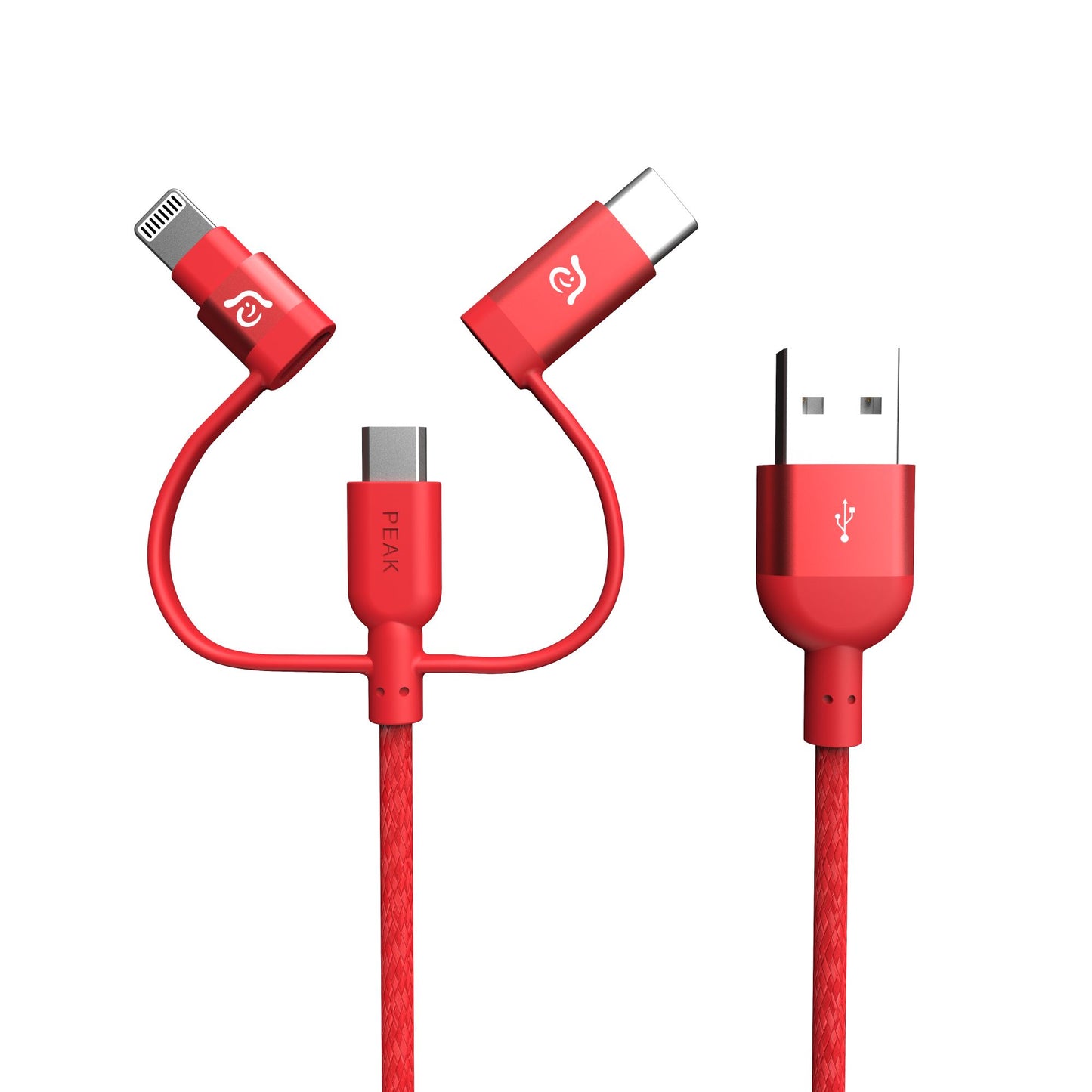 Meet the PeAk II Trio 120B, your ultimate all-in-one charging solution. Designed for durability and versatility, this 3-in-1 cable features MFi-certified Lightning, USB-C, and Micro USB connectors—making it the only cable you’ll need for all your devices. Built with a rugged nylon-braided exterior and metal connector housings, the Trio 120B doesn’t just survive daily wear and tear—it thrives in it. Whether you're charging your iPhone, Android device, or accessories, this 120cm cable delivers fast, reliable power with uncompromising strength.