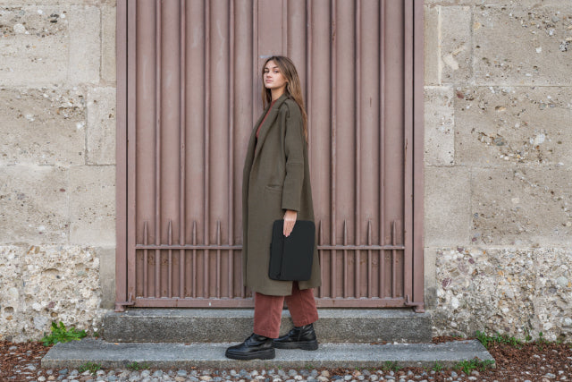 Stretchy case for 14” MacBook Pro made with fabric produced from recycled plastic with an external pocket for your accessories and an internal Anti-Slip strap to protect your device. The 4mm thick neoprene construction provides excellent coverage against bumps and scratches.